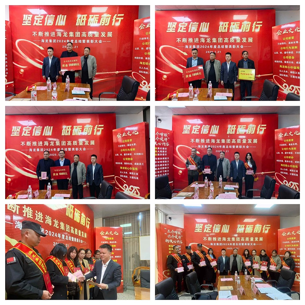 1月21日下午,海龍集團在浦北經營中心召開2024年度總結表彰大會,總結2024年經營工作成效亮點,提出2025年的工作重點和任務。集團董事長彭國輝出席會議并講話,總經理彭大權代表集團公司作年度工作報告。集團各部門、各子公司負責人及優秀員工,天龍保安浦北金投分公司、浦北縣鑫浦瀝青有限公司員工代表參加會議。
